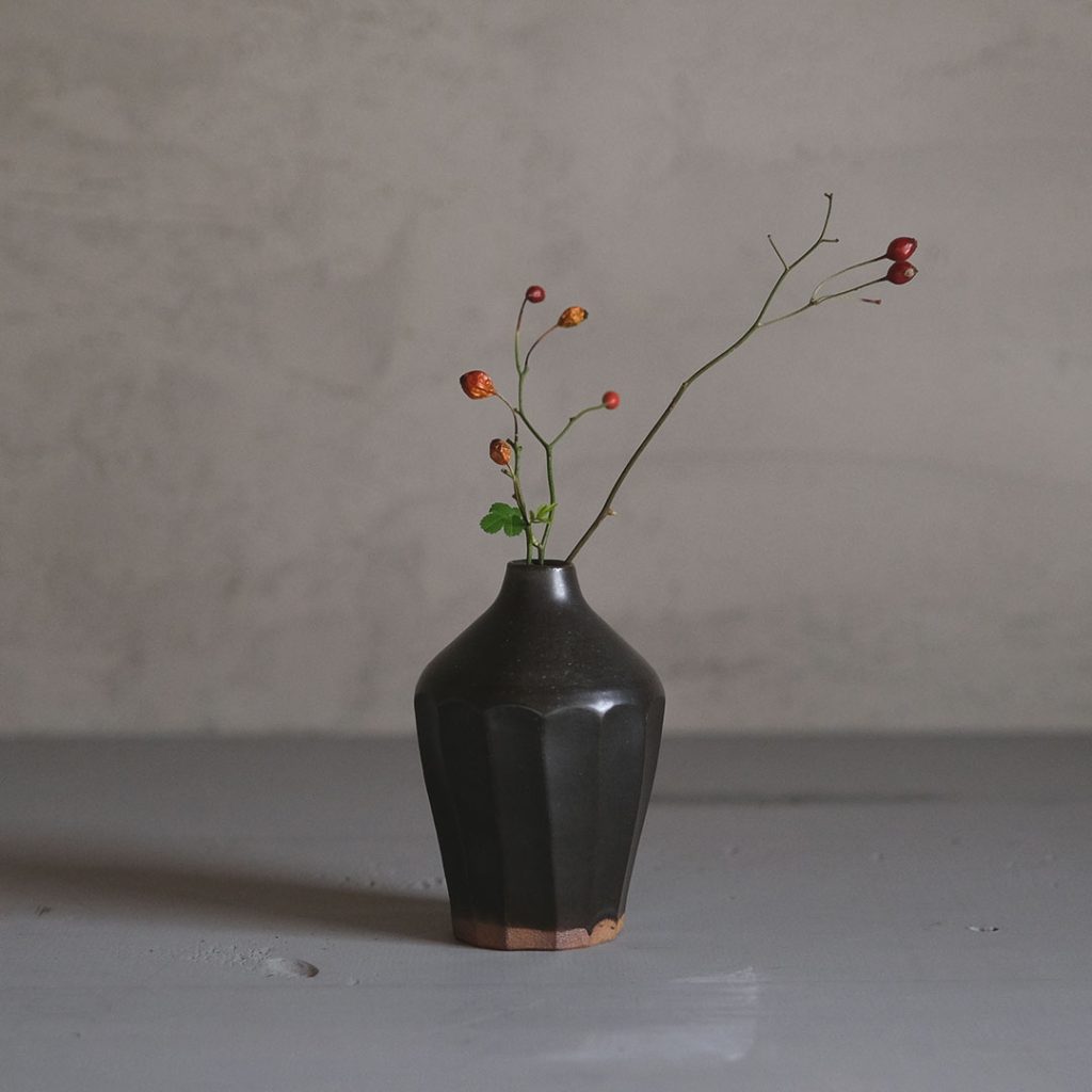 花入/黒唐津マット釉/面取り